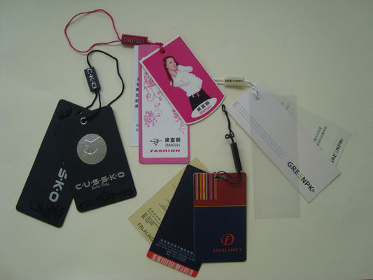 কাস্টম প্রিন্টেড বিলাসবহুল পোশাকের কাগজের হ্যাং ট্যাগ এমবসড সিলভার ফয়েল স্ট্যাম্পিং লোগো