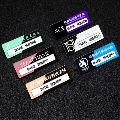 | লোগো সহ কাস্টম স্টেইনলেস স্টিল নেম ব্যাজ প্রতিস্থাপনযোগ্য সন্নিবেশ প্রিমিয়াম নেম ট্যাগ প্রস্তুতকারক |